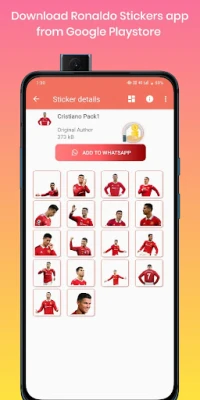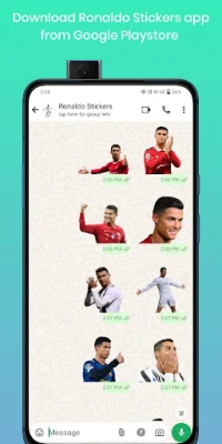 Free and easy to use – instantly add Ronaldo stickers to your WhatsApp chats. A beautiful variety of new stickers showcasing iconic moments and emotions of Ronaldo. Big, bold stickers that make your conversations stand out. Ideal for all Ronaldo fans who want to add some flair to their everyday chats. Chat like a champion with Ronaldo Stickers for WA and share the passion of football's greatest legend!