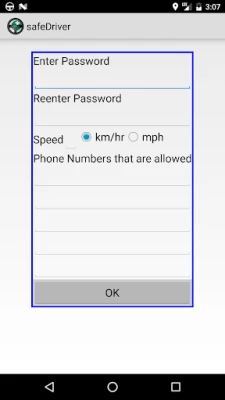 When you first run the app, it places you on the setup page where you create the app’s password, triggering speed and allowed phone numbers. Any of these items may be changed at any time after reentering the app’s password. Up to five allowed phone numbers can be entered. These numbers can be called or received regardless of the driver’s speed.