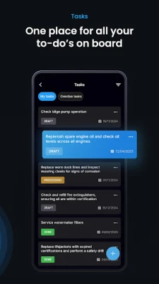 More than just monitoring, Sailsense is your digital companion for managing tasks and maintenance. Schedule upkeep, track repairs, and manage support tickets directly within the app, ensuring a smooth communication flow with your boatyard or service provider.