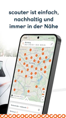 An einer der vielen scouter Stationen in deiner Umgebung hast du immer ein passendes Auto zur Verfügung. Jederzeit, wenn du es brauchst. Jedes Auto hat eine feste Station in unserem Netz, an der es bereitsteht und zu der es wieder zurück muss.