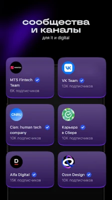 Задавайте вопросы аналитикам, дизайнерам, эйчарам, аналитикам, разработчикам и маркетологам, СЕО креативных агентств и студий, топ-менеджерам ИТ-компаний и не только. Пользуйтесь советами тех, кто уже был на вашем месте и знает, как лучше поступить.