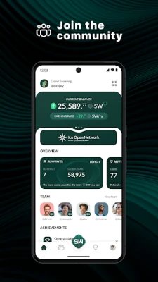 Build your team by inviting friends, and earn bonuses for active referrals. Stay active to avoid slashing, and upgrade your level to unlock features and protect your balance.
