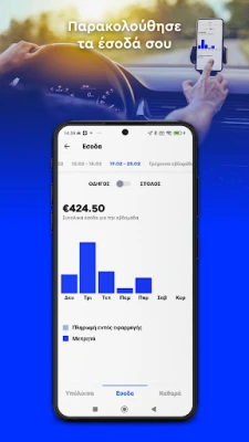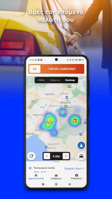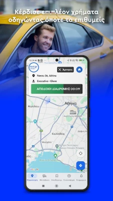 σε πραγματικό χρόνο και σε βοηθάει να κάνεις περισσότερες διαδρομές με το ταξί σου, μειώνοντας τον κενό χρόνο μεταξύ των διαδρομών σου. Σχεδιάστηκε βάσει των αναγκών σου και εξελίχθηκε σε συνεργασία με οδηγούς, παρέχοντας ένα φιλικό και χρηστικό περιβάλλον. Μέσω της εφαρμογής, οι επιβάτες σε εντοπίζουν και μπορούν να σε καλέσουν με το πάτημα ενός κουμπιού στο κινητό τους.
