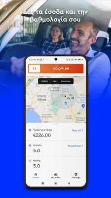 ● Δεν λαμβάνεις εντολές από κανέναν. Ανταποκρίνεσαι στις κλήσεις των επιβατών απλά πατώντας στην οθόνη της συσκευής σου. Χωρίς τηλέφωνα, χωρίς δεσμεύσεις!