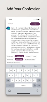 Through our app-based community, we've brought together a diverse group of individuals, including survivors, those who have experienced divorce, professional therapists, clinical psychologists, and the general public. Here, they engage in discussions covering a wide range of topics such as financial concerns, family dynamics, relationships, health matters, and more. We leverage technology to ensure that this community remains both valuable and conducive to overall well-being. We firmly believe in the therapeutic power of sharing one's problems, as it can offer profound relief and support in one's life journey. Our platform is committed to facilitating these vital connections and conversations to contribute positively to mental health and general well-being.