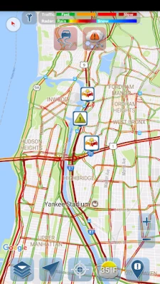 Traffic Spotter provides a Road Conditions feature, which allows you to find which roads are likely to be icy, foggy, snowy, windy, or ponding approximately within the next three hours. Road Conditions currently covers the United States of America.
