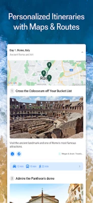 ℹ️ Each travel plan contains a detailed and interactive itinerary, things to do, recommended places to eat, and tips. But unlike other AI tour planner & travel guide apps, we curate and reference all info from manually selected trusted travel blogs.