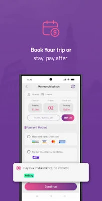 Trips is the best Saudi travel app that enables you to book hotels and flights at the best prices. trips offers an easy and seamless user experience for both local and international travelers, allowing you to book hotels and flights to desired destinations within the Kingdom of Saudi Arabia and around the world. The app includes more than 500 global and local airlines and over 2 million hotels worldwide, providing users with a comprehensive list of available flights. They can compare prices, schedules, and seat availability with just a few clicks and receive instant confirmation for bookings. The app also offers installment payment services without interest, making travel planning easier and smoother.