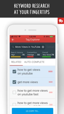 The world's #1 browser extension for YouTube Creators is now available on-the-go with TubeBuddy Mobile. Get more views and subscribers by optimizing your videos for organic growth and access all-things-your-channel quickly and easily.
