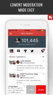 --FEATURES-- * Live Subscriber Count * Keyword Research - Suggested Tags - Tag Explorer - Tag Rankings * Comment Moderation - Canned Responses - Comment Filters - Commenter's Subscriber Count * Channel Milestones - Download to your Photos Library - Share on Social Networks * Video Management & Optimizaiton - Engagement Stats - SEO Stats * Industry News * Track Video Topics * Create and manage Tag Lists
