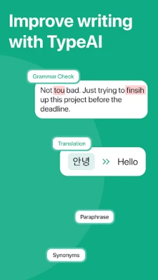 TypeAI is a must-have app for anyone who writes on their phone. Download it now and take your writing to the next level!