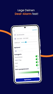 Um kein Reiseangebot zu verpassen, kannst Du Dir in der App ganz schnell und einfach Deinen persönlichen DEAL-ALARM einrichten. Wähle das Reiseziel, den Reisezeitraum, den Abflughafen, die Kategorie Deiner Reise (Pauschalreise, Flug, Hotel oder Kombireise) aus, gib Dein Budget an und der Deal-Alarm versorgt Dich automatisch mit den neuesten Reiseschnäppchen.