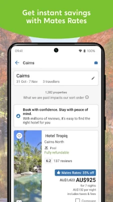 The Wotif app brings the Home of Holidays to your fingertips. Explore thousands of mobile-exclusive deals that can save you up to 30% on your holiday. Book on the go and manage your trips and hotel anywhere, any time.