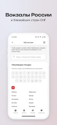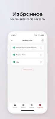 Приложение позволяет добавить вокзалы в «Избранное», чтобы расписание движения поездов и электричек от вашего вокзала было всегда под рукой.