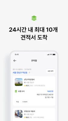 • 사고 사진과 증상만 올리면 24시간 내에 최대 10개의 수리 견적서가 도착해요.