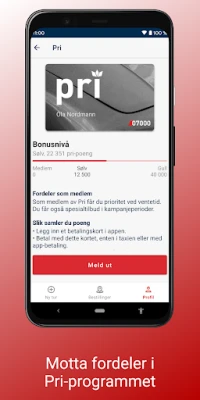 - Vi har et bonussystem som gir deg poeng for alle turer som er betalt med kort. Du kan se din bonussaldo og bonusfordeler i appen.