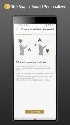 Use your smartphone camera to capture your ear images and create your hearing characteristics, to be stored onto your account. You can retrieve the data from your account onto the supported devices and readily enjoy personalized spatial sound.