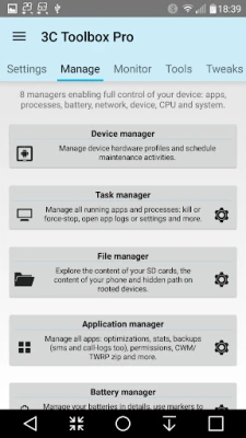 3C All-in-One Toolbox combines many features into one giant toolbox with a modern and easy-to-use interface. Every tool you need to monitor, control and fine-tune all your Android devices.