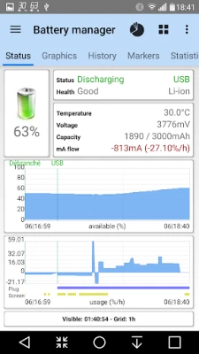 ★ Battery manager helps you analyze and improve your consumption. Complete data (including mA) and charge cycles history, custom statistics based on profiles, consumption estimates in use or standby. Special support for dual battery devices, battery changes and LG Quick Circle and Samsung Edge notifications
