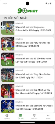 Hãy tải ngay 90phút Lịch Trực Tiếp Bóng Đá để không bỏ lỡ bất kỳ trận cầu nào, từ những trận cầu đỉnh cao đến những bàn thắng mãn nhãn. Cập nhật lịch thi đấu, theo dõi trực tiếp và cảm nhận từng giây phút hồi hộp của bóng đá!