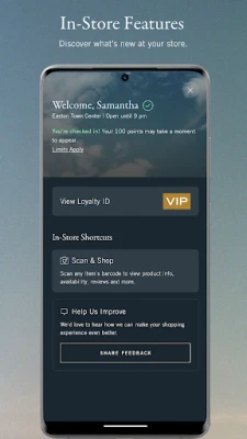 SCAN TO SHIP: Don't have your size in store? Scan an item using the app and have it shipped free to your store. Just select Pick Up in Store in Checkout.