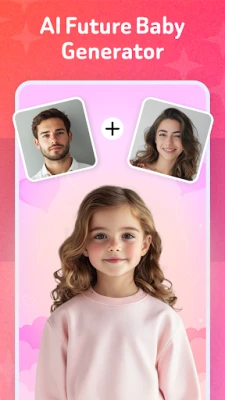 Upload photos of both parents, and the app uses advanced AI to combine your features and generate a realistic baby photo.