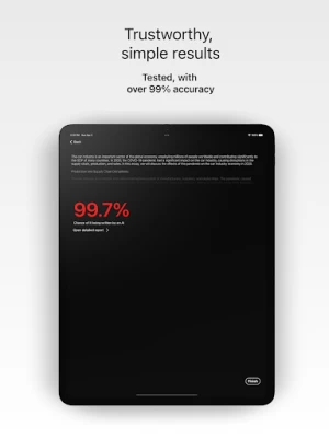 With its unparalleled accuracy, AI Detector has scanned over 25 thousand texts and continues to be the go-to solution for professionals and curious users alike. Whether you're verifying text credibility or discerning the origin of information, our app provides accurate results in seconds.