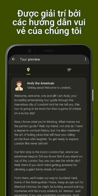 Tạo cuộc phiêu lưu cá nhân của riêng bạn với tính năng Tour tùy chỉnh của Alltours. Chọn các địa danh yêu thích của bạn, chọn từ một loạt các hướng dẫn thân thiện và để Alltours tạo ra tour du lịch hoàn hảo cho bạn. Cho dù bạn tham gia vào lịch sử, nghệ thuật hay ẩm thực, Alltours bạn đã bảo hiểm.