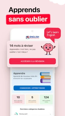 Mémorise un maximum de vocabulaire anglais tout en t’amusant. 🚀 En utilisant cette application 5 minutes par jour, tu pourras enfin :