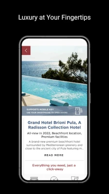 - Open your hotel door with new generation MOBILE KEY - Book trips, restaurants, massages, sport fields, babysitters ... - Order directly into your hotel room, food & drinks from our menus - Buy goods and services - Be informed about news, events & places - Real-time interaction with hotel from anywhere - Share your experience online on social networks