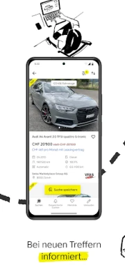 Lege Suchkriterien für den gewünschten Personenwagen einmalig fest und wir speichern sie automatisch für dich.
