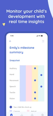 * Monitor your child's development with custom milestone tracking, providing insights appropriate to their age and developmental stage.