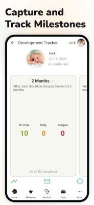 • Add photos or journal entries to create keepsakes in the milestone tracker.