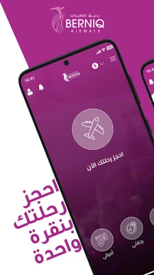 تطبيـق برنيــق للطيـــران ، الأول من نوعه في ليبيا،حيث يُتيح لك حجز تذكرتك حسب وجهتك ذهاباً و عودة دون الحاجة لترك مكانك ويمكنك من خلال هذا التطبيق أيضا تسديد قيمة حجوزاتك بوسائل الدفع الإلكترونية المتاحة ً، كذلك يمكنك تتبع مسار رحلتك و مواعيد الرحلات المحلية والدولية و الإطلاع على كل المُستجدات والأخبار .