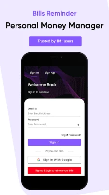 Manages your Bills and reminds you before the due date. Completely free App, No Hidden Charges