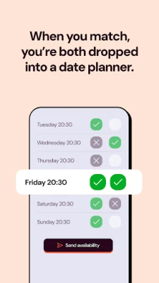 Breeze is the dating app without a chat function. A match means an instant date - after you match, you share your availability, and we plan the date and arrange the location for you.