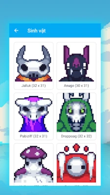 Ứng dụng này chứa một số lượng lớn các bài học vẽ nghệ thuật pixel. Tất cả chúng đều được phân loại. Vũ khí, quái vật, sinh vật thần thoại, vật phẩm trò chơi, phép thuật và nhiều danh mục khác được trình bày trong ứng dụng. Chọn những gì bạn thích nhất. Số lượng các bài học vẽ trong các thể loại không ngừng tăng lên và chất lượng của chúng ngày càng được cải thiện. Các danh mục này bao gồm súng trường tấn công, súng lục, ma quỷ, sinh vật huyền bí, vũ khí cận chiến và hơn thế nữa.