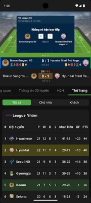 - Tỷ số trực tiếp và kết quả được cập nhật nhanh chóng
