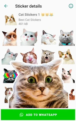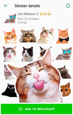- Hundreds of stickers of cute kittens, animated cats, funny memes cats.