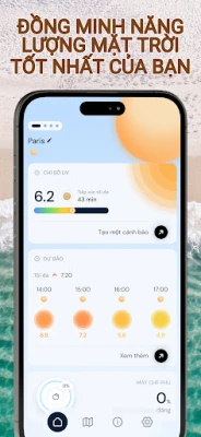 Tận hưởng từng khoảnh khắc đầy nắng mà không phải lo lắng với ứng dụng của chúng tôi. Cho dù để có làn da rám nắng tối ưu hay chỉ đơn giản là hưởng lợi từ lợi ích của vitamin D, ứng dụng của chúng tôi sẽ hướng dẫn bạn cách tiếp xúc với ánh nắng mặt trời lành mạnh và an toàn. Với tiện ích thiết thực của chúng tôi, hãy luôn cập nhật chỉ số UV ở vị trí của bạn và chăm sóc làn da của bạn.