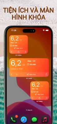 Nhận thông báo buổi sáng hàng ngày cho bạn biết về cường độ chỉ số UV trong ngày, giúp bạn có sự chuẩn bị tốt nhất. Tiện ích UV tiện dụng của chúng tôi cho phép bạn theo dõi chỉ số UV trong nháy mắt, ngay trên màn hình chính. Tối đa hóa làn da rám nắng của bạn một cách an toàn, tránh bị bỏng và chăm sóc làn da của bạn.