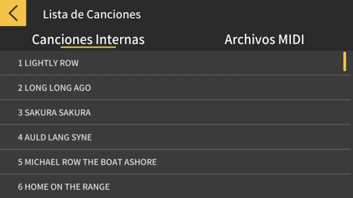 Chơi một trong số 50 bài hát cài sẵn trong Chordana Play hoặc thêm bài hát tải về (Midi).