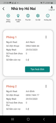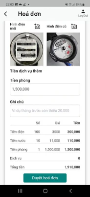 – Tự động tính tiền điện, nước, tiền phòng, dễ dàng thêm các khoản khác như tiền rác, tiền mạng, phí dịch vụ…