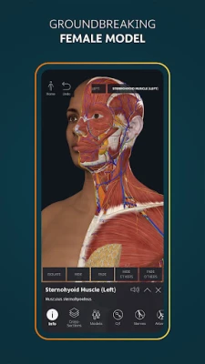 Dynamic Cross-sections, real-time Muscle Motion, Insertion & Origin mapping, Bone Surface & Landmark mapping, 12 layered systems, Nerve Tracer, Blood Supply Tracer