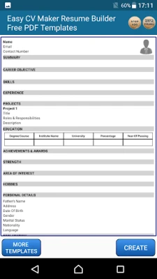 Download This Cool Free and Easy CV Maker and Resume Builder app and Choose from Beautiful Premium Templates formats to Make PDF of your CV.