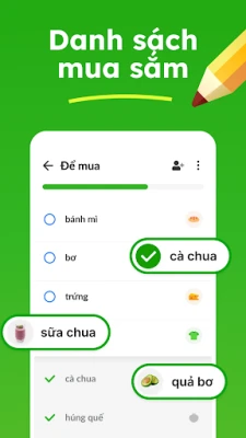Danh sách mua sắm giúp việc mua sắm của bạn hiệu quả hơn, dễ dàng hơn, nhanh chóng hơn và quan trọng nhất là thông minh hơn. Đây chính là những gì bạn muốn từ một danh sách mua sắm và thậm chí còn nhiều hơn thế nữa.