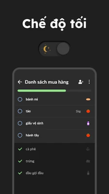 Chia sẻ danh sách với người khác — giúp việc mua sắm với gia đình và bạn bè dễ dàng hơn nhiều. Danh sách của bạn sẽ được đồng bộ hóa, vì vậy mọi thay đổi sẽ được cập nhật ngay lập tức cho người khác.