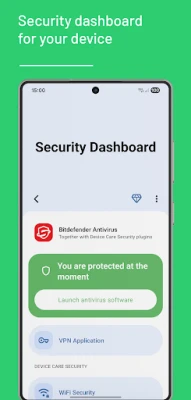 Get an overview of your security status. This section is designed to provide quick access to security applications or plugins, such as antivirus software, that you have installed on your device. You can launch your existing security software from here and access related settings like Wi-Fi security.