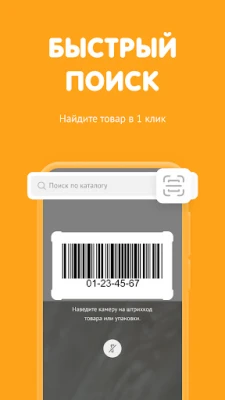 - Быстрый и удобный поиск товара по названию и штрихкоду производителя;