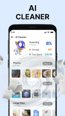 Ai cleaner giúp bạn xác định và dọn dẹp các tệp lớn chiếm dung lượng có giá trị trên thiết bị của bạn. Các tệp Lage chiếm quá nhiều dung lượng lưu trữ trên thiết bị. Phone cleaner phát hiện và liệt kê các tệp lớn, sau đó người dùng có thể xem storage cleaner và dọn dẹp các tệp lớn để dọn dẹp bộ nhớ điện thoại.